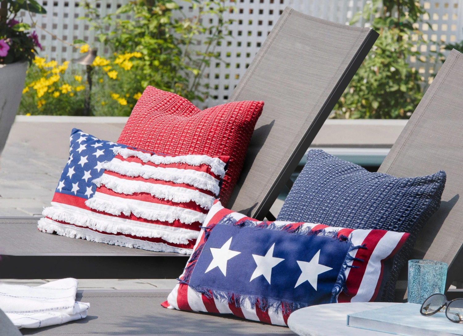 With a bold patriotic print, this 3 Stars And Stripe Decorative Pillow is sure to make a statement in your home. Made with 100% cotton and a feather filling, this pillow is as cozy as it is stylish. Celebrate your love for your country with this festive Americana decor!
