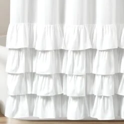 Turn your bathroom from ordinary to incredibly special when you add this Allison Ruffle Shower Curtain. The layers of ruffles flow beautifully, creating a feminine textured look. So pretty and elegant, this shower curtain adds a bright yet subtle style to your primary or guest bathroom.
