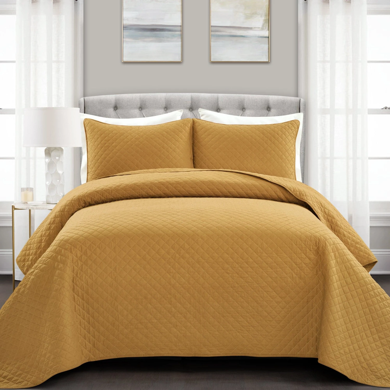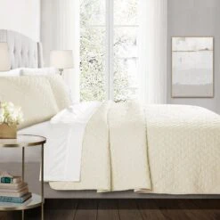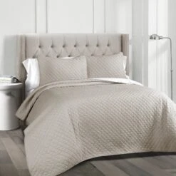 This soft and lovely Ava Diamond Oversized Cotton Quilt Set is perfect for the minimalist. This generously sized quilt set will brighten up any room and any mood. It easily fits well with any bedroom decor, and the diamond pattern adds interest and texture.