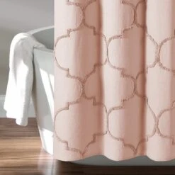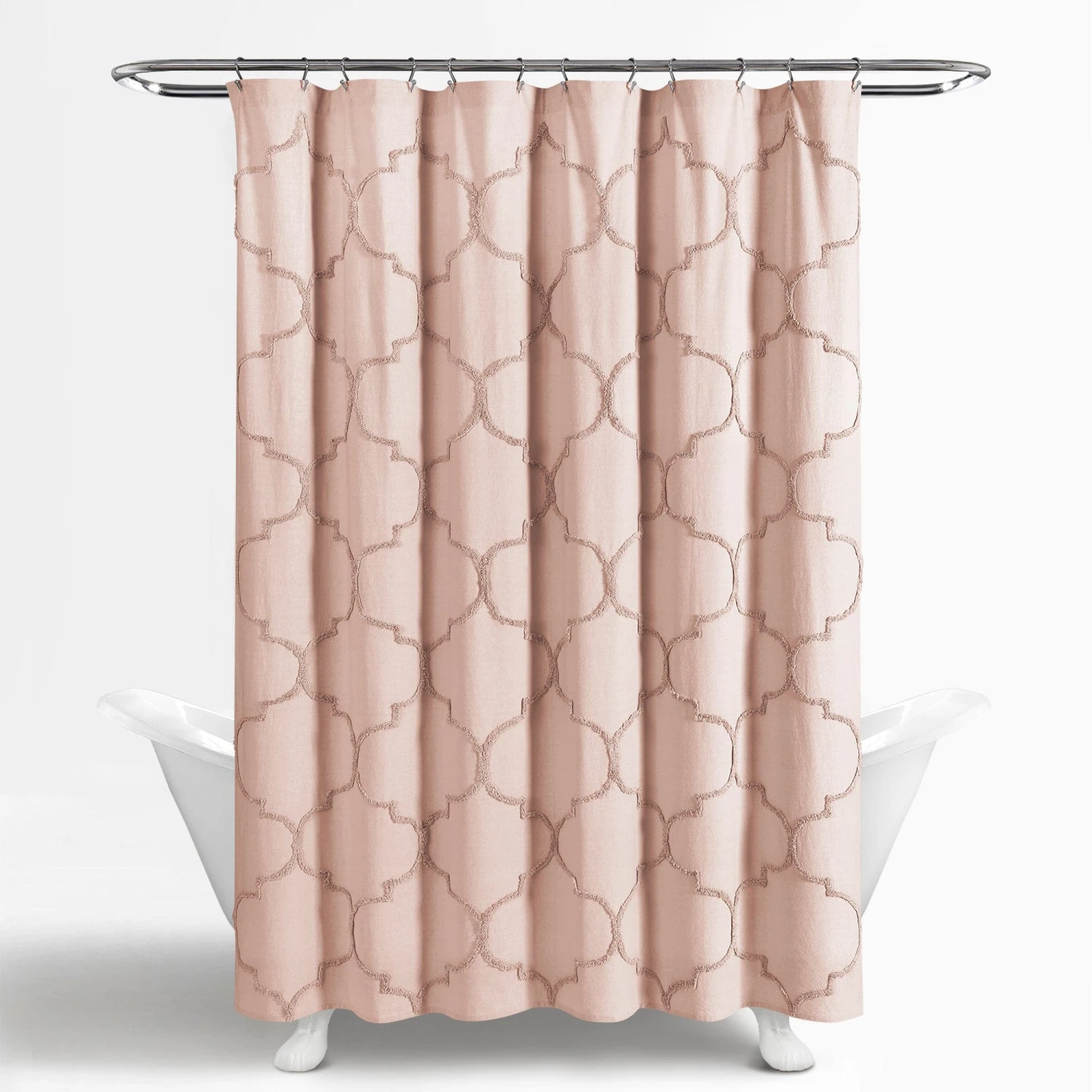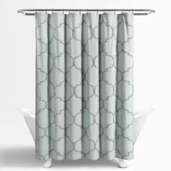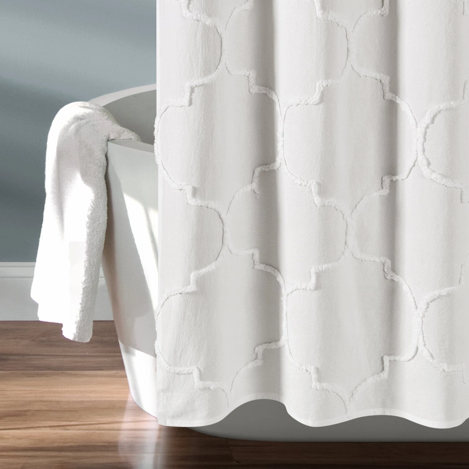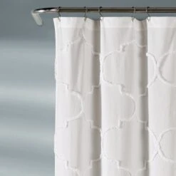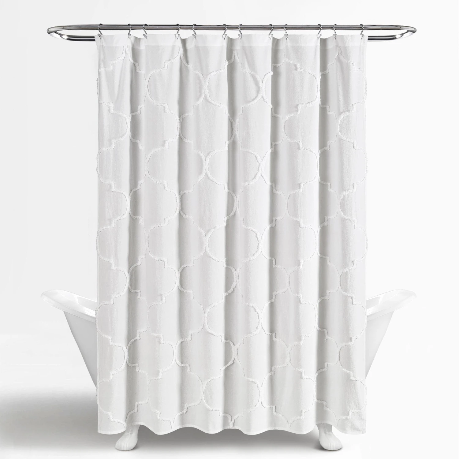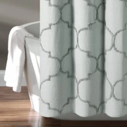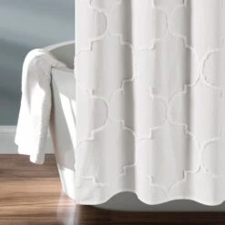 This stylish new Avon Chenille Trellis Shower Curtain adds delightful texture to your master bathroom or guest bathroom with chenille woven embellishments on cotton fabric. The classic trellis pattern is eye-catching but will not take over the look of the bathroom.