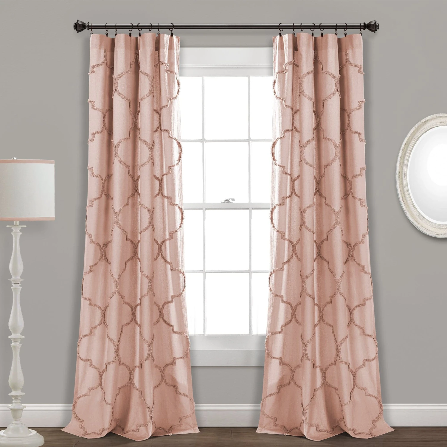 Our Avon Chenille Trellis Window Curtain Panel Set is available in multiple colors and sizes. Each panel is 40 inches wide and is available in your choice of 84 inches or 95 inches in length (some colors may not be available in all sizes). This curtain style is sold by the pair, so you will receive two panels per order.