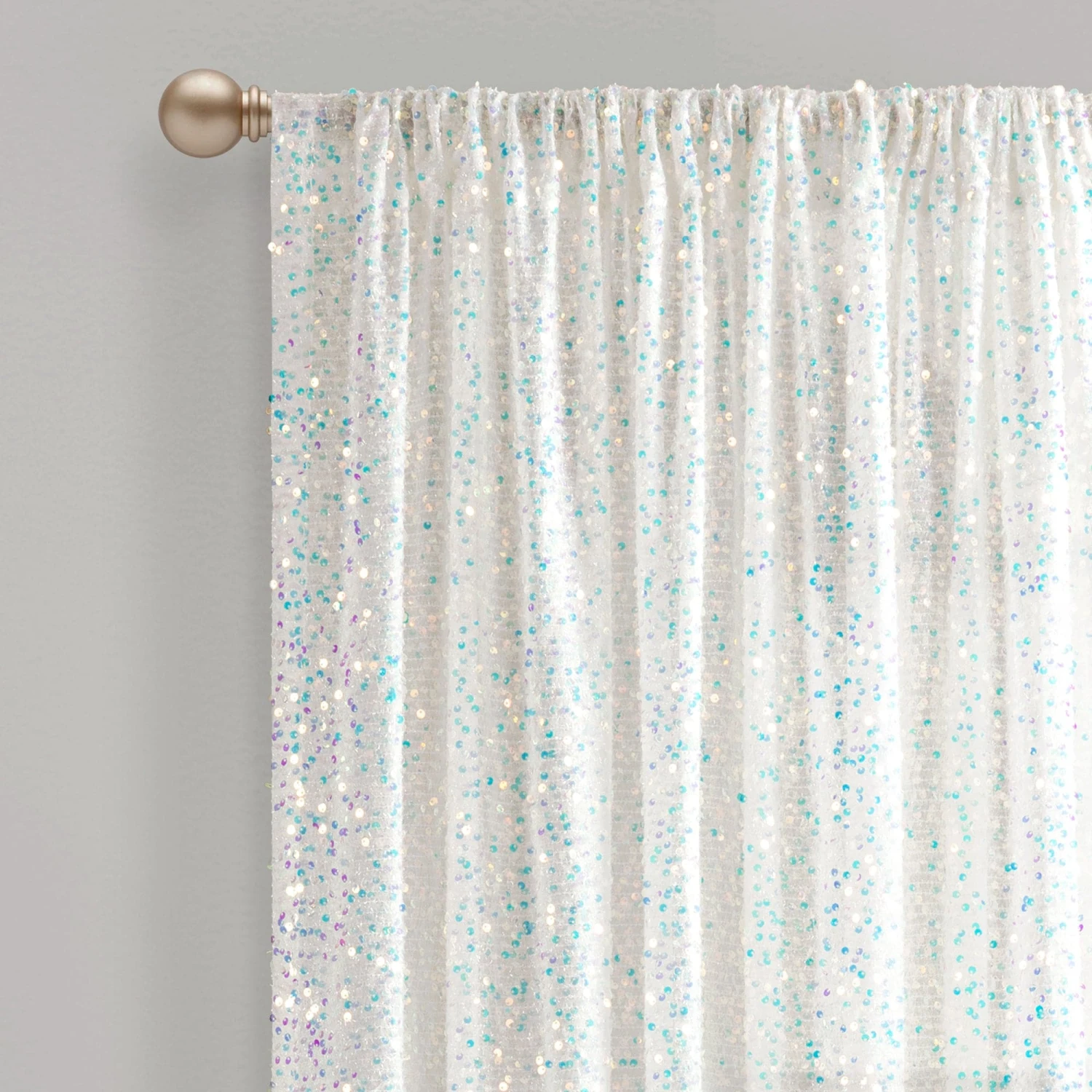With its sheer and shimmering fabric, this Ballgown Glam Sparkle Sequins Window Curtain Panel is sure to add fashion to your home while allowing plenty of natural light to flood your space. There is no lining, but the sequins covering the length of the fabric will provide privacy from outsiders.