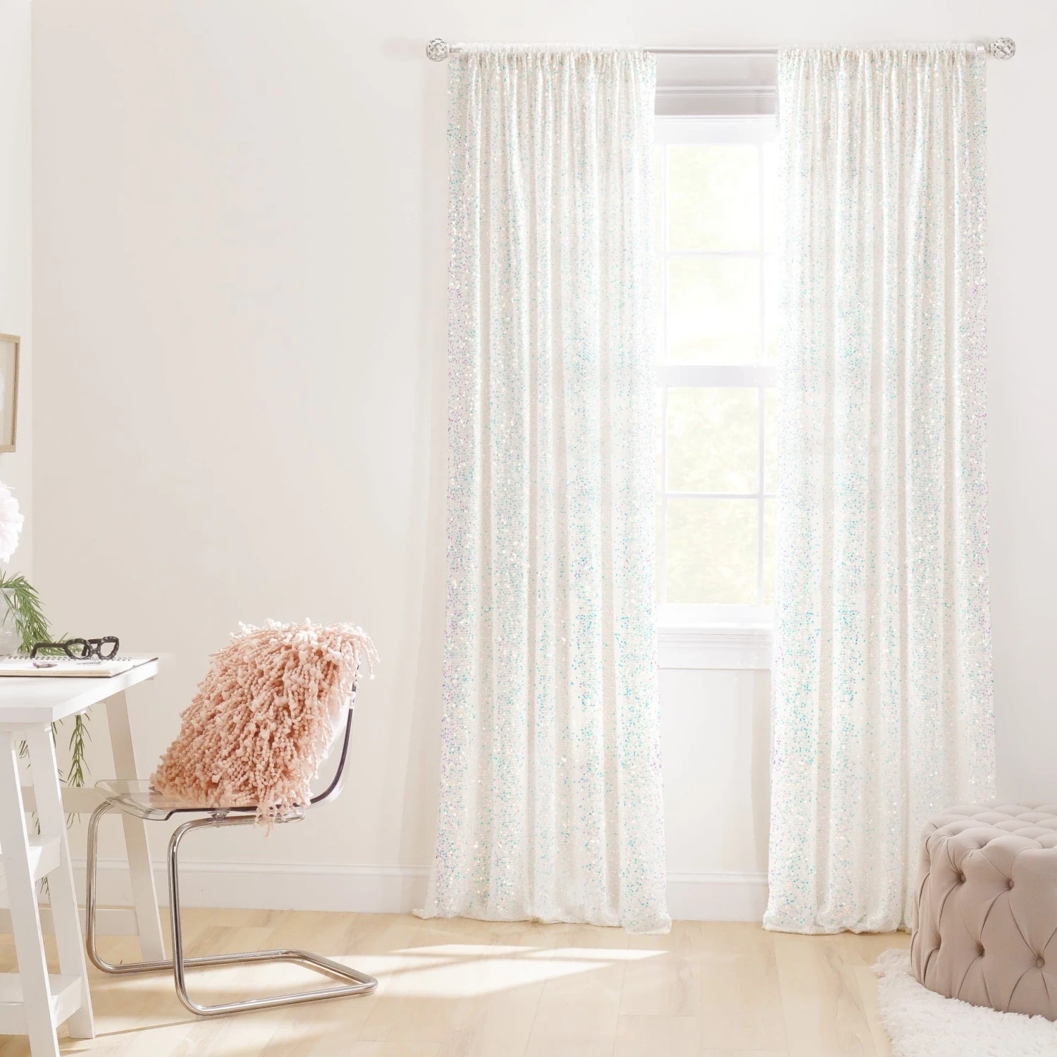 Introducing a new way to add instant glamour to your home, this beautiful textured Ballgown Glam Sparkle Sequins Window Curtain Panel adds some serious sparkle to any room. It’s perfect for dressing up a kid’s bedroom or adding a touch of luxury to any living space in your home.