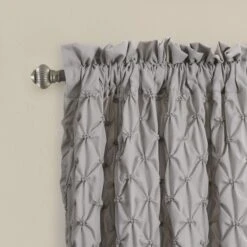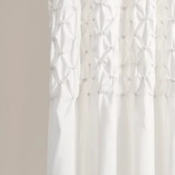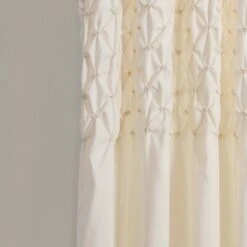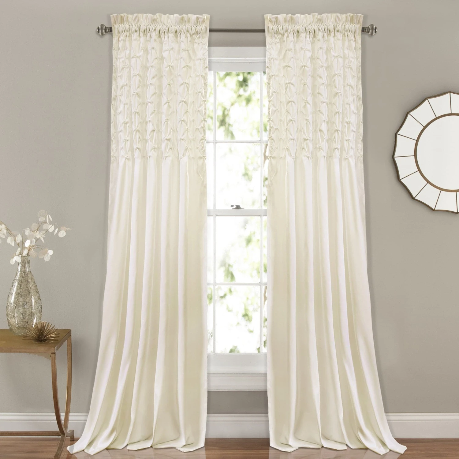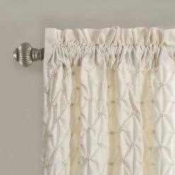 Diamond pin tucking and elastic embroidery across the top give these curtains a beaded look. Neutral hues and flowy fabric give them an elegant look. Its easy to see why this Bayview Window Curtain Set is among our most popular window treatments. These panels instantly take a dull room and turn it into a fabulously stylish space.