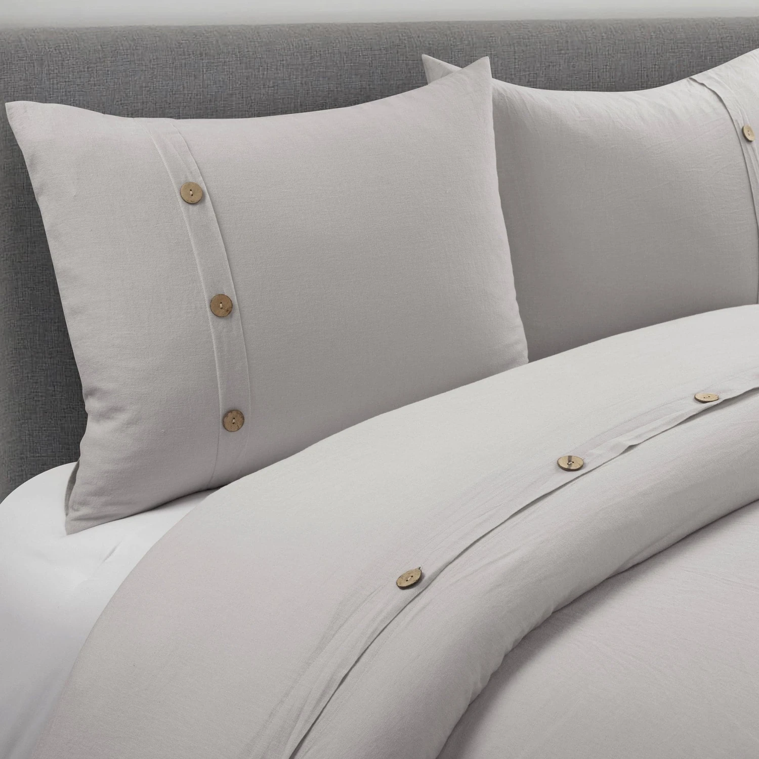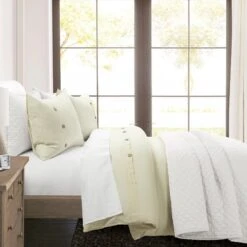 The simplistic nature of the solid color design will easily coordinate with your existing decor. The Belgian Flax Linen Rich Cotton Blend Duvet Cover 3 Piece Set looks great on its own, but is also ideal for layering with another bedding set or throw blanket.