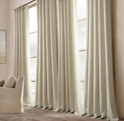 The Belgian Flax Prewashed Linen Rich Cotton Blend Window Curtain Panel is sold by the single panel and each measures 50 inches wide. They’re available in your choice of length, including 84 inches, 96 inches and 108 inches. This panel is currently available in four color options: gray, ivory, linen and white.