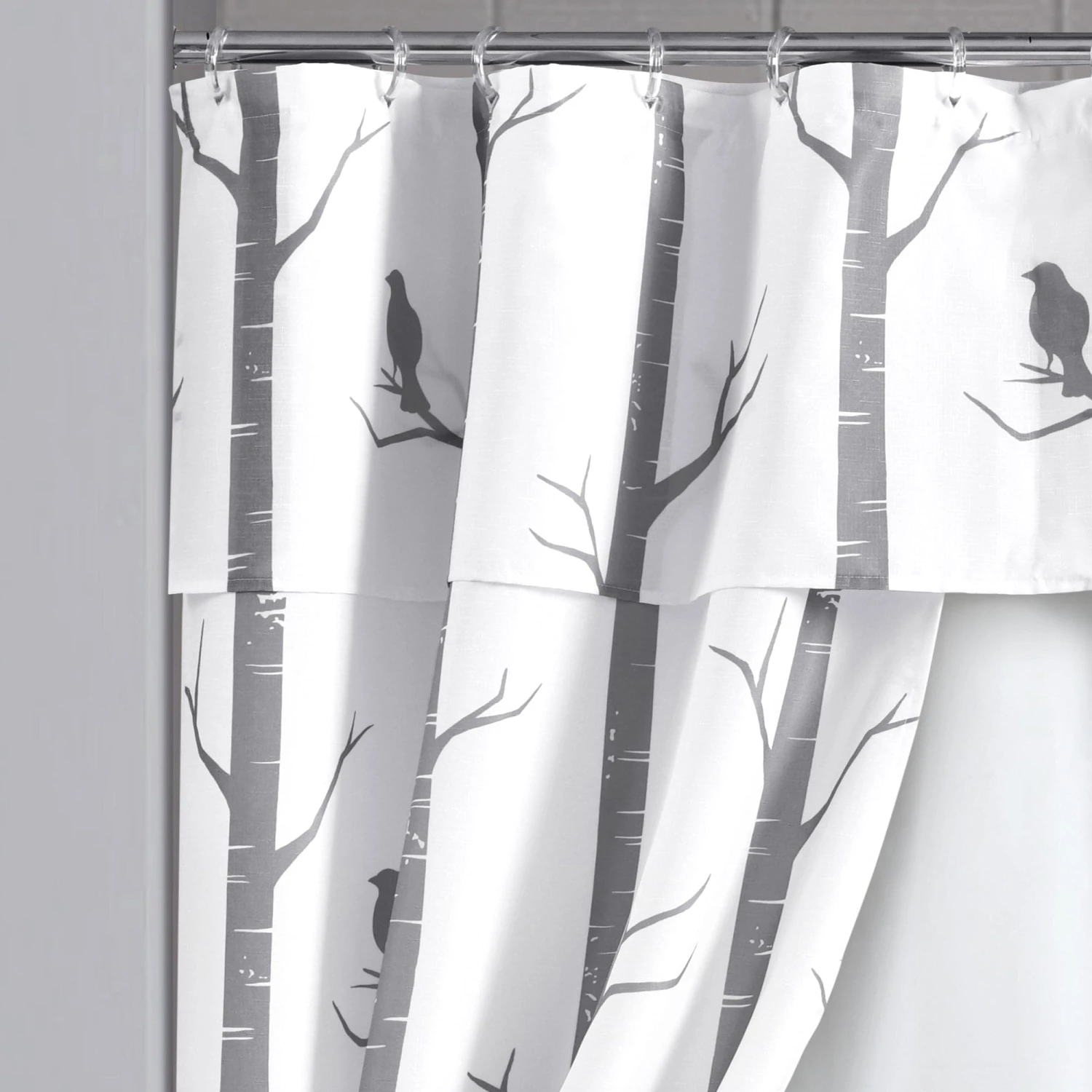 Give your primary or guest bathroom a retro style upgrade with this Bird On The Tree Double Swag Shower Curtain 16 Piece Complete Set. Function meets fashion with this bird design in soothing colors.