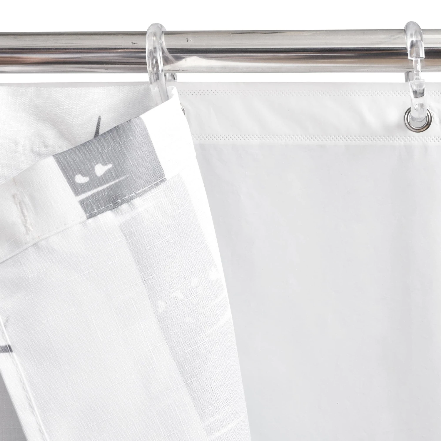 - Set Includes: 1 Shower Curtain, 1 PEVA Liner, 12 Rings, 2 Tie Backs