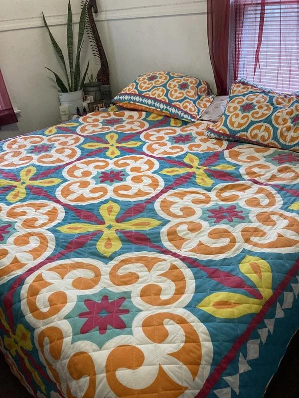 Don’t be afraid of bright colors and bold designs, embrace them! This chic Boho Floral Reversible 3 Piece Quilt Set will turn your interior design dreams into reality. Maximize your home decor style with this fearless color palette to create a bedroom masterpiece that speaks to your inner designer.