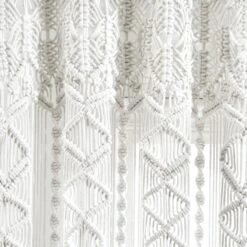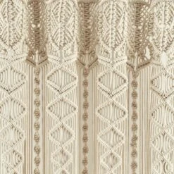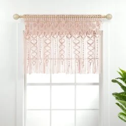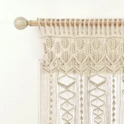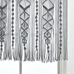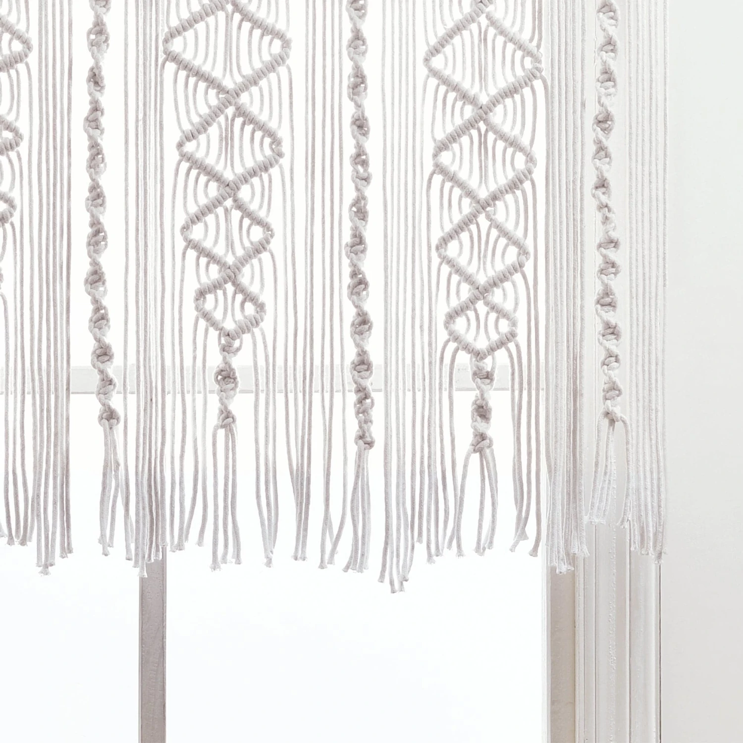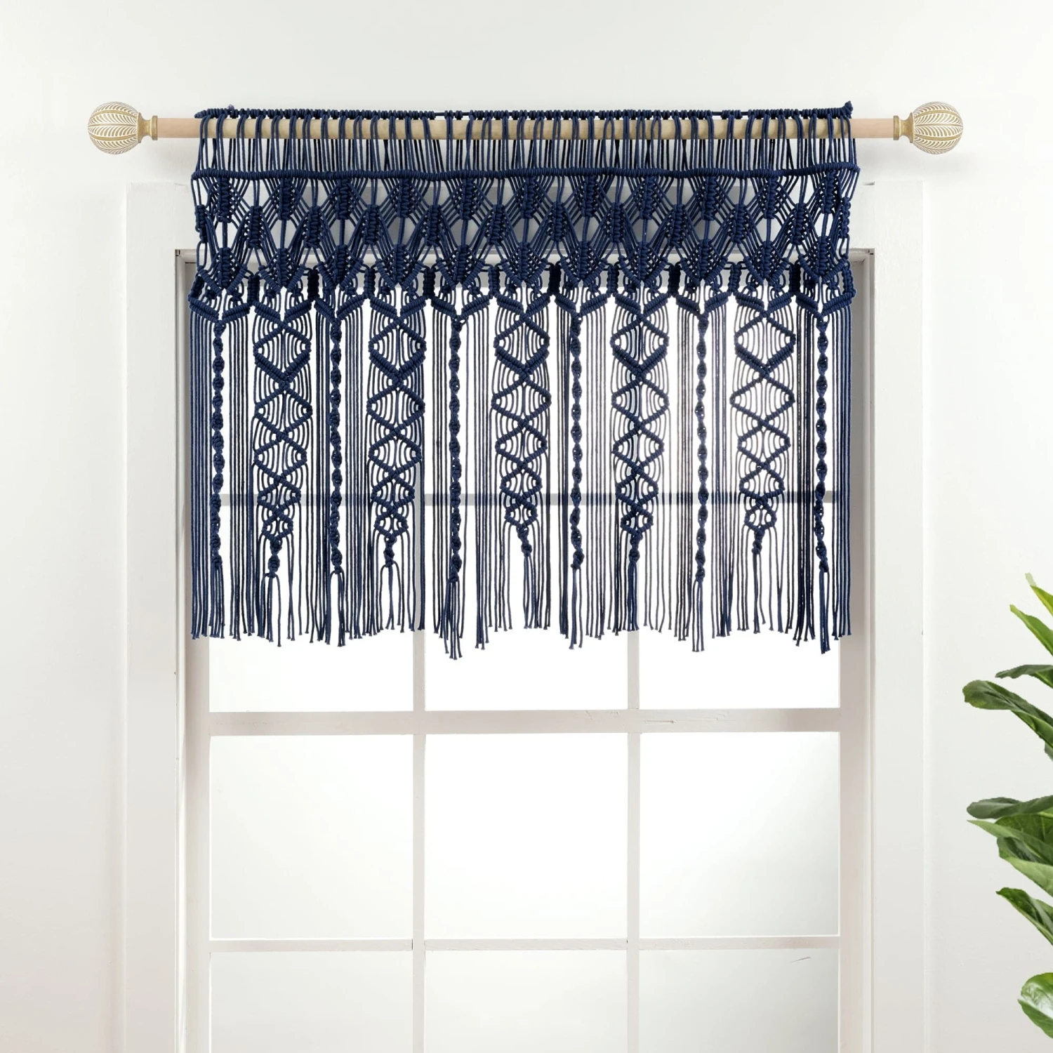 Create a boho look in multiple rooms of your home with this multi-functional decorative piece. The macramé is knotted and woven by hand to create textured geometric patterns. Use this Boho Macrame Textured Cotton Valance as valance, a kitchen window curtain, or as wall decor.