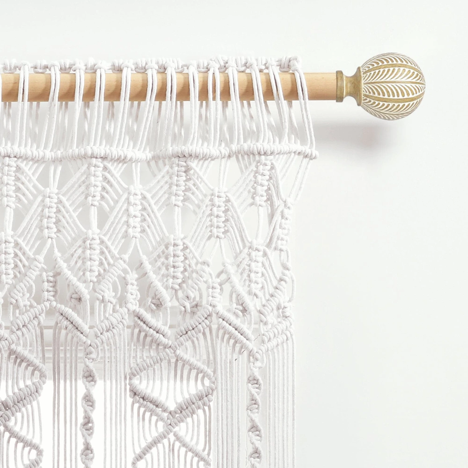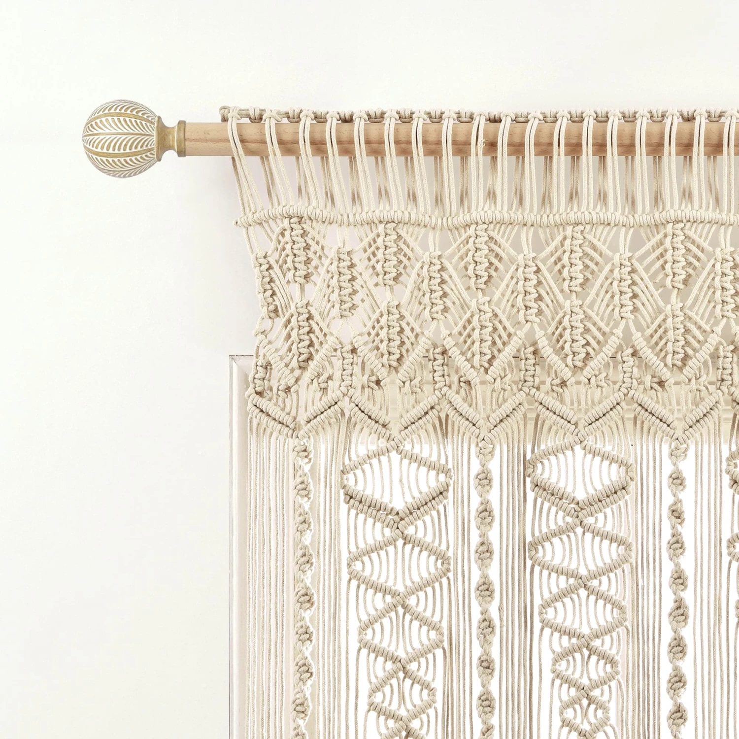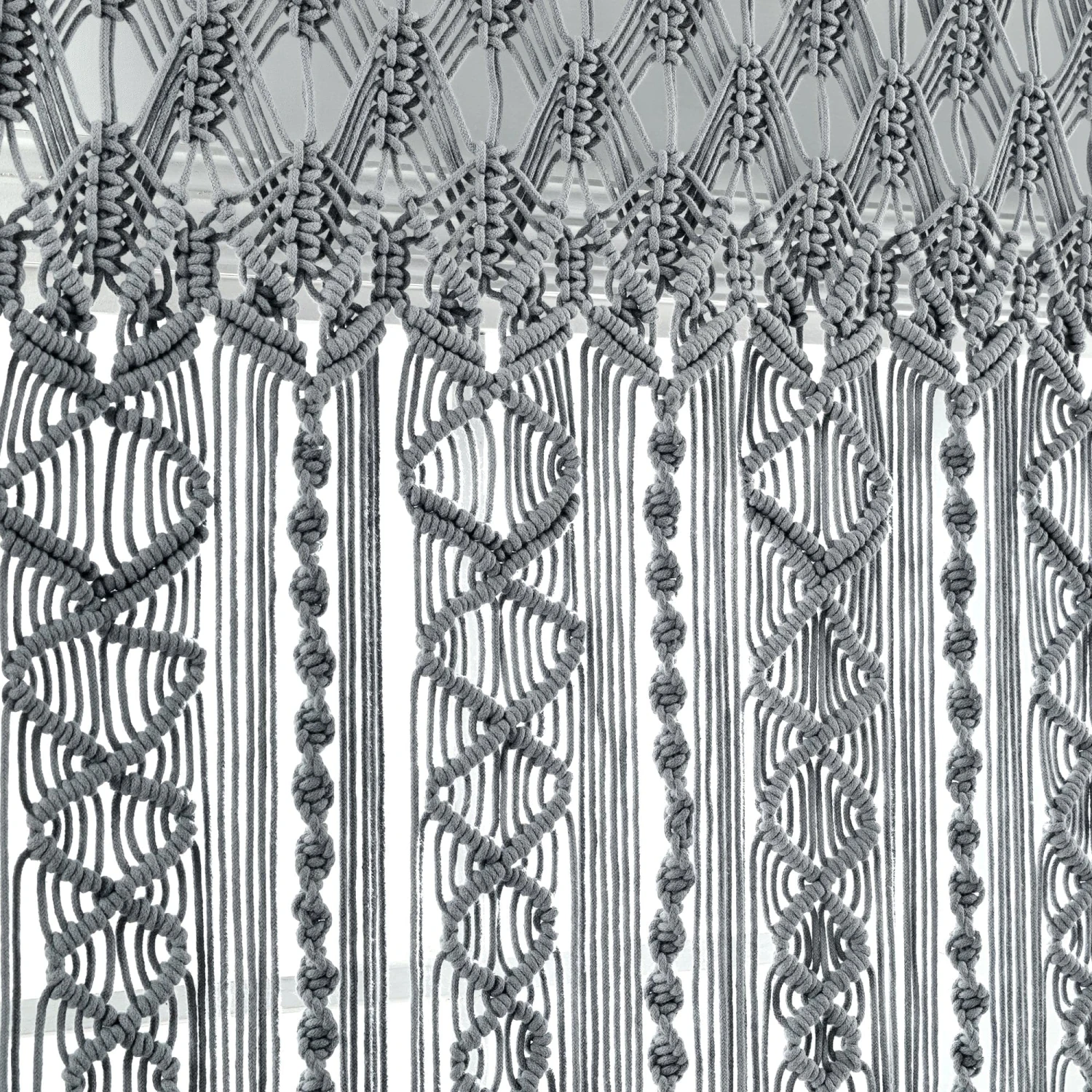 Create a boho look in multiple rooms of your home with this multi-functional decorative piece. The macramé is knotted and woven by hand to create textured geometric patterns. Use this Boho Macrame Textured Cotton Valance as valance, a kitchen window curtain, or as wall decor.