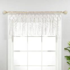 Installation is easy with a 4-inch rod pocket. Just slide your curtain rod through the pocket to hang, or use clip rings to hang the Boho Macrame Textured Cotton Valance from your curtain rod.