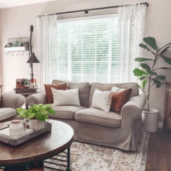This Boho Macrame Textured Cotton Window Curtain is sold by the single panel, so if you need to replace one panel or need an odd number of panels to cover your windows, you won’t have to purchase more than you need. However, you will need to purchase two panels to get the look in the photos. Each panel measures 40 inches wide and is available in your choice of 63-inch, 84-inch or 95-inch length. Please note some colors may not be offered in all sizes.