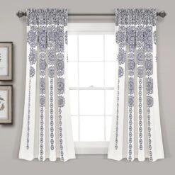 This Boho Macrame Textured Cotton Window Curtain is sold by the single panel, so if you need to replace one panel or need an odd number of panels to cover your windows, you won’t have to purchase more than you need. However, you will need to purchase two panels to get the look in the photos. Each panel measures 40 inches wide and is available in your choice of 63-inch, 84-inch or 95-inch length. Please note some colors may not be offered in all sizes.