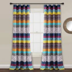 This Boho Stripe Window Curtain Panel Set adds bright color and loads of energy to your room. The stunning jewel tones really stand out in this exciting design. These panels would look fabulous in a teen’s bedroom, a first apartment or a beautiful guest bedroom. The globally inspired design is perfect for all ages and works in many decor styles.