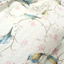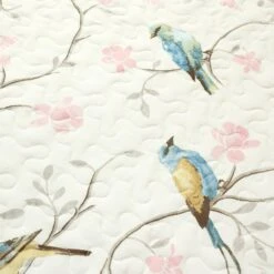 Caring for this Botanical Bird & Flower Quilt 3 Piece Set is very easy, as it is safe to machine wash and tumble dry. Please be sure to follow all instructions on the label.