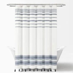 Be inspired by the texture and movement of the hanging tassels to bring this fun detailing into the rest of your bathroom styling. This Breezy Chic Tassel Jacquard Recycled Cotton Shower Curtain measures 72 inches on each side and should fit most standard bathtubs.