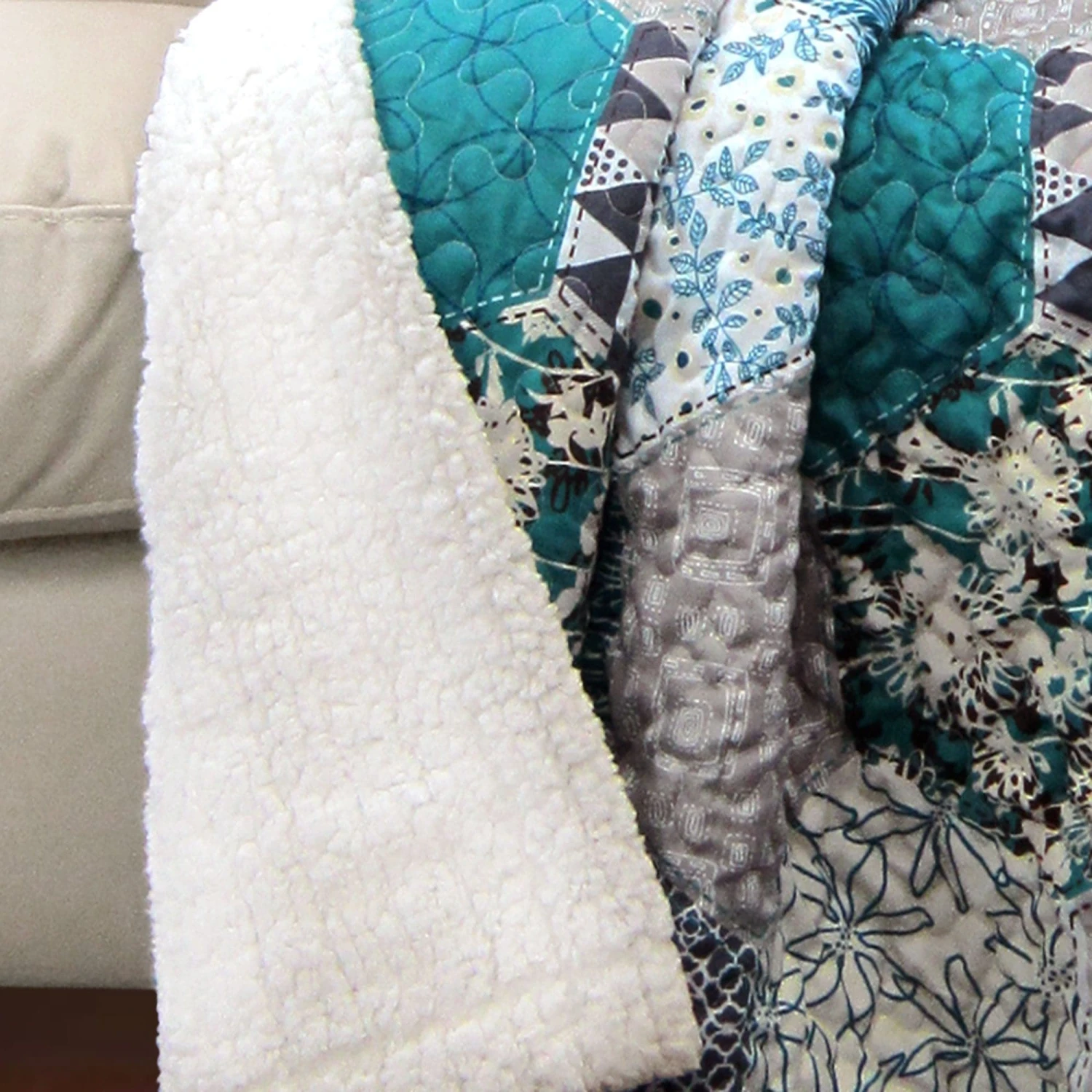 With a unique pentagon patchwork pattern, this Briley Throw Sherpa will be an excellent addition on any bed or couch. The Sherpa reverse brings warmth and softness for the most comfortable relaxation.