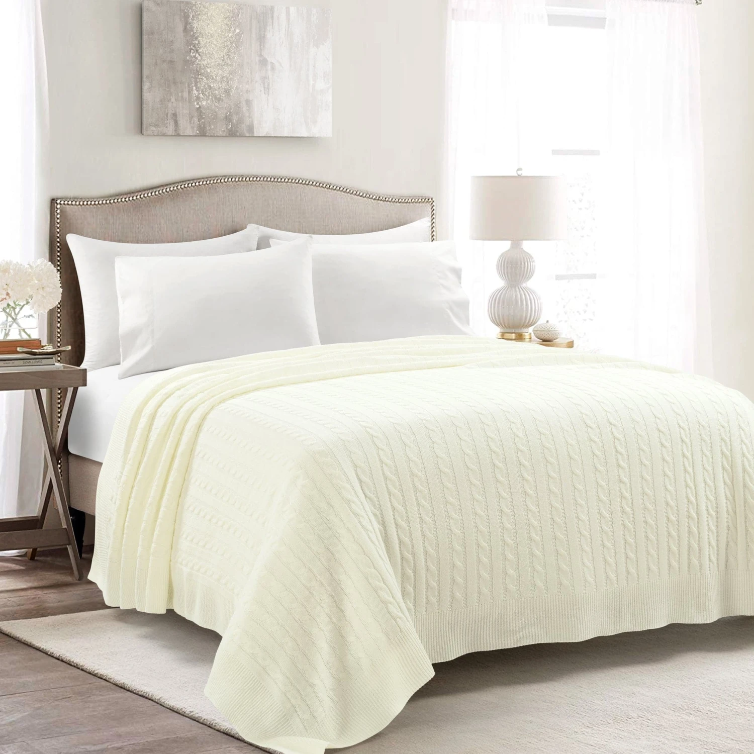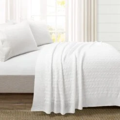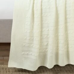 The Cable Soft Knitted Blanket/Coverlet is edged with a ribbed border similar to the sleeves of your favorite winter sweater. Use it in your primary bedroom or guest bedroom to complement your existing decor or drape it over a sofa or chair in the living room to use as an oversized throw.