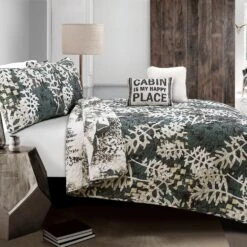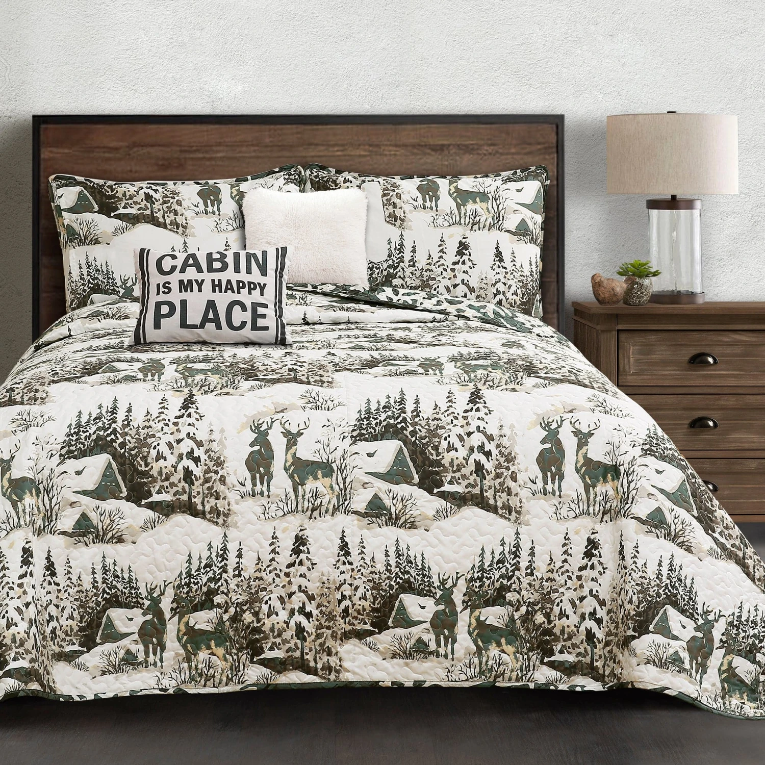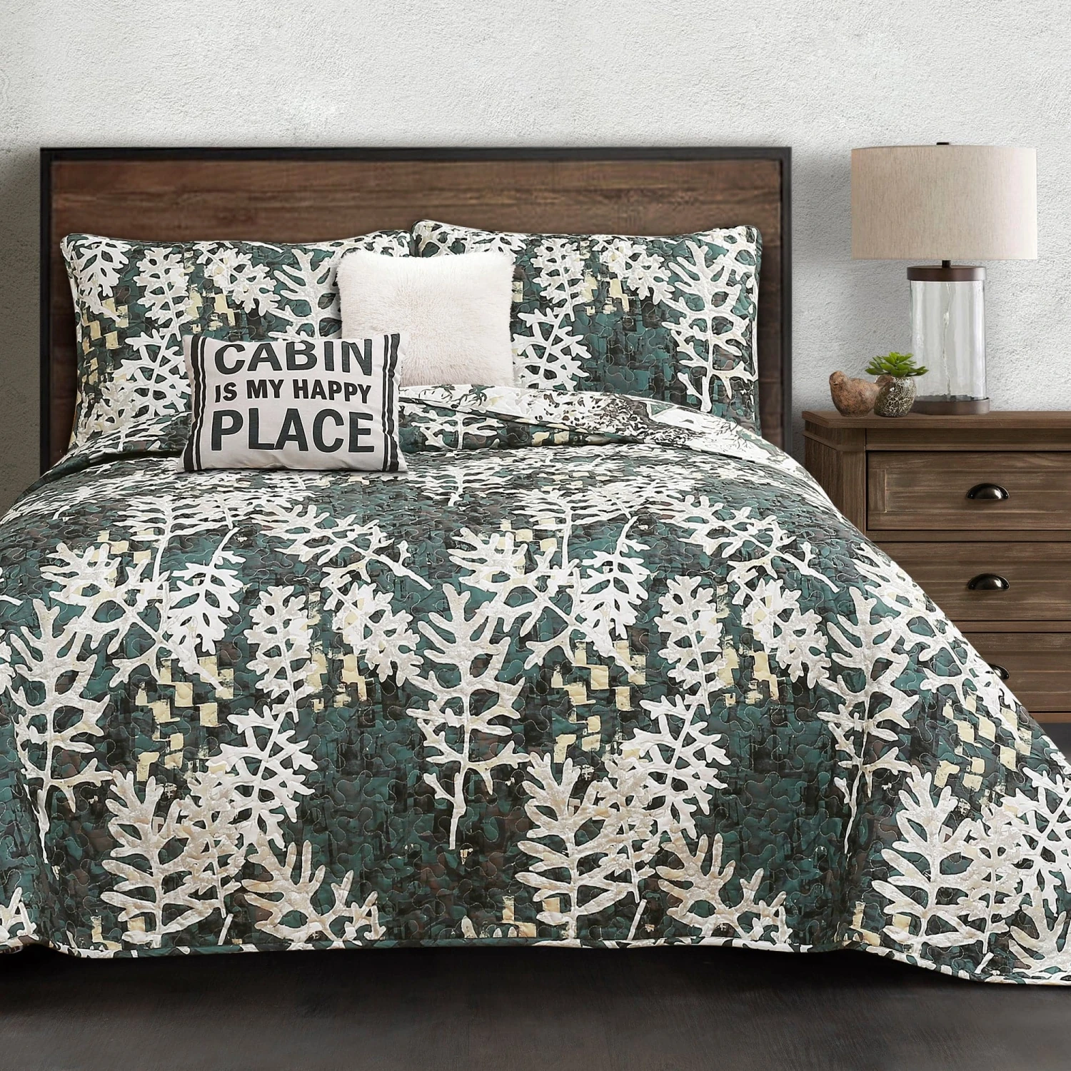 This soft Camouflage Leaves Quilt 5 Piece Set gives you two great looks in one. The front features a fun camouflage design with leaves, while the reverse has a wintry cabin in the woods feel. Both the quilt and shams are reversible, so you can switch up the look in your room as often as you like.