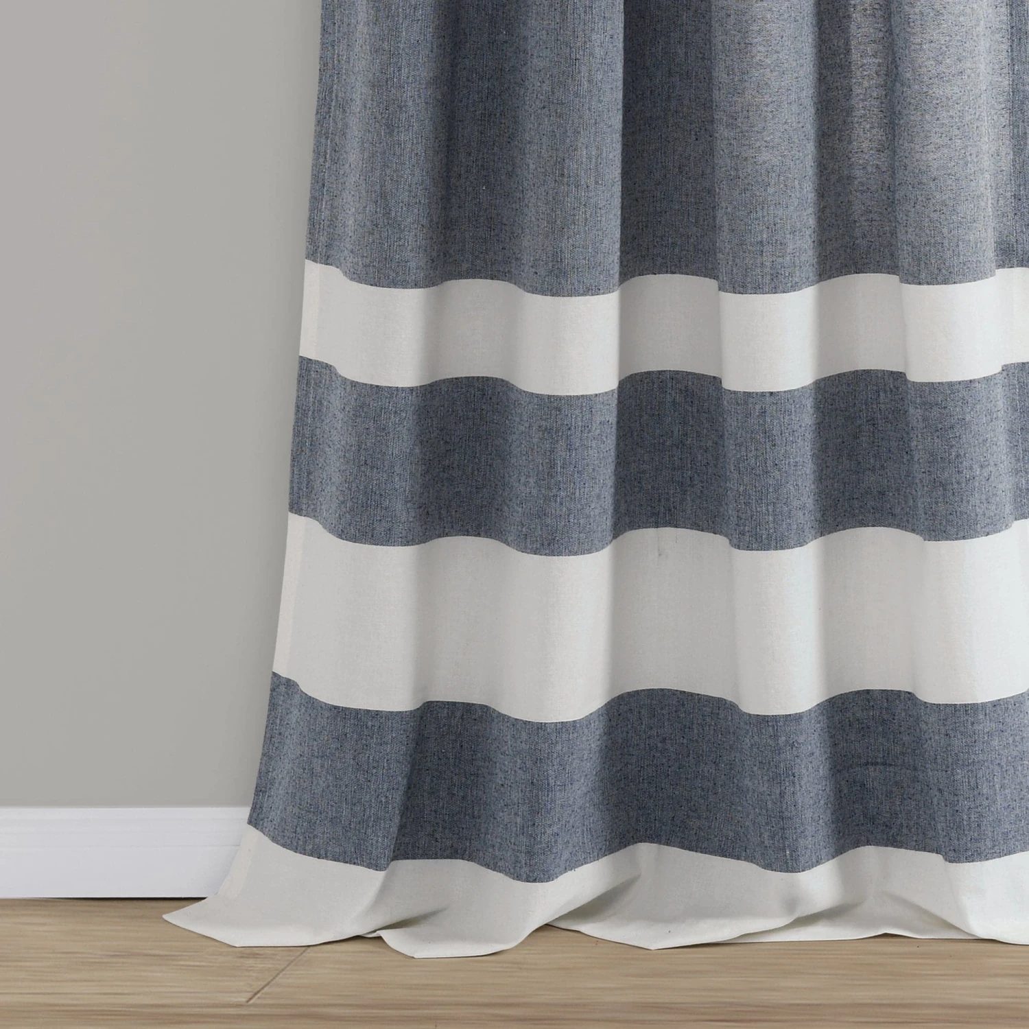 Update your home with coastal style by adding this Cape Cod Stripe Yarn Dyed Cotton Window Curtain Panel Set. Horizontal cabana stripes in varying widths come together to create a subtle yet stylish beach house look. These are ideal for a bedroom, home office or family room.
