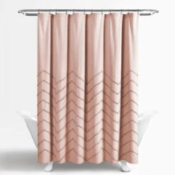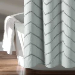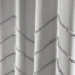 This delightful new Chenille Chevron Shower Curtain adds lovely texture to your master bathroom or guest bathroom with chenille woven embellishments against cotton fabric. The contemporary chevron pattern will turn heads but will not take over the look of the bathroom.