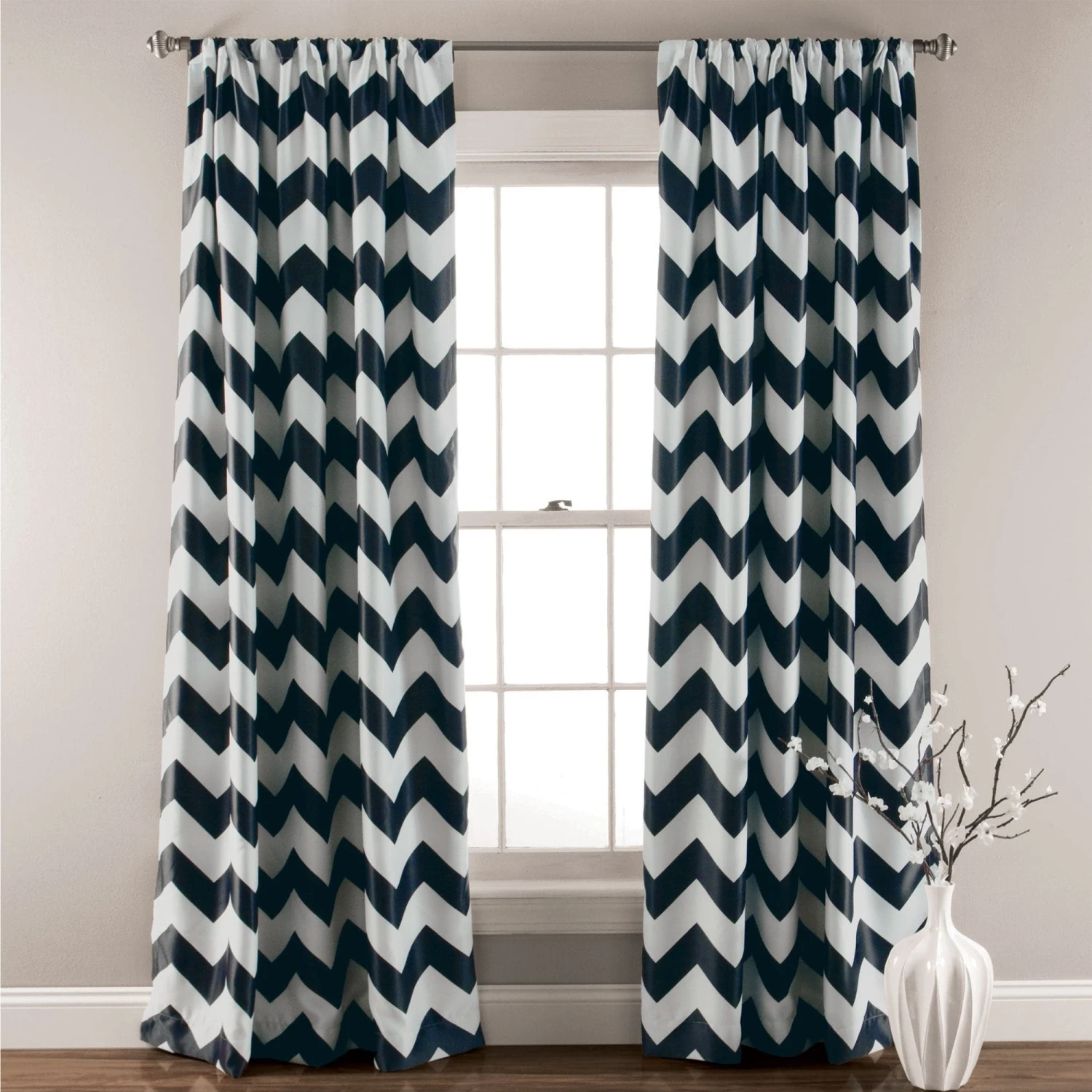 The Chevron Blackout Window Curtain Set is sold by the pair. Each panel measures 84 inches long and 52 inches wide. With multiple colors to choose from, you are sure to find the perfect match for your space.