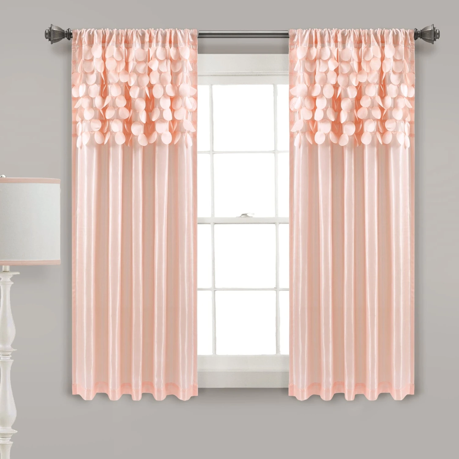 Our Circle Dream Window Curtain Set is available in your choice of dreamy colors and choice of 63 inches, 84 inches or 95 inches in length. No matter which color or size you choose, each panel will be 54 inches wide. Some colors may not be offered in all sizes.