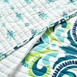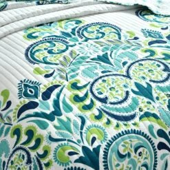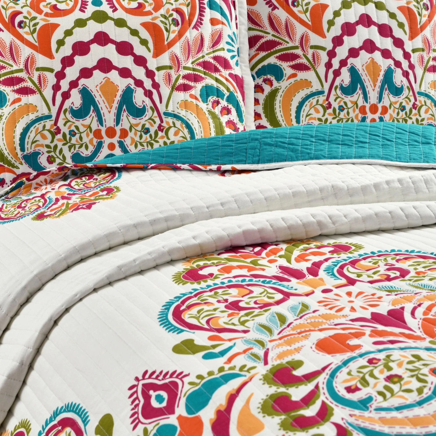 Our Clara Quilt 3 Piece Set features bold colors and a unique paisley damask quilt pattern that add a gorgeous pop to the look of any bedroom. It makes the perfect centerpiece for the master or guest bedroom.