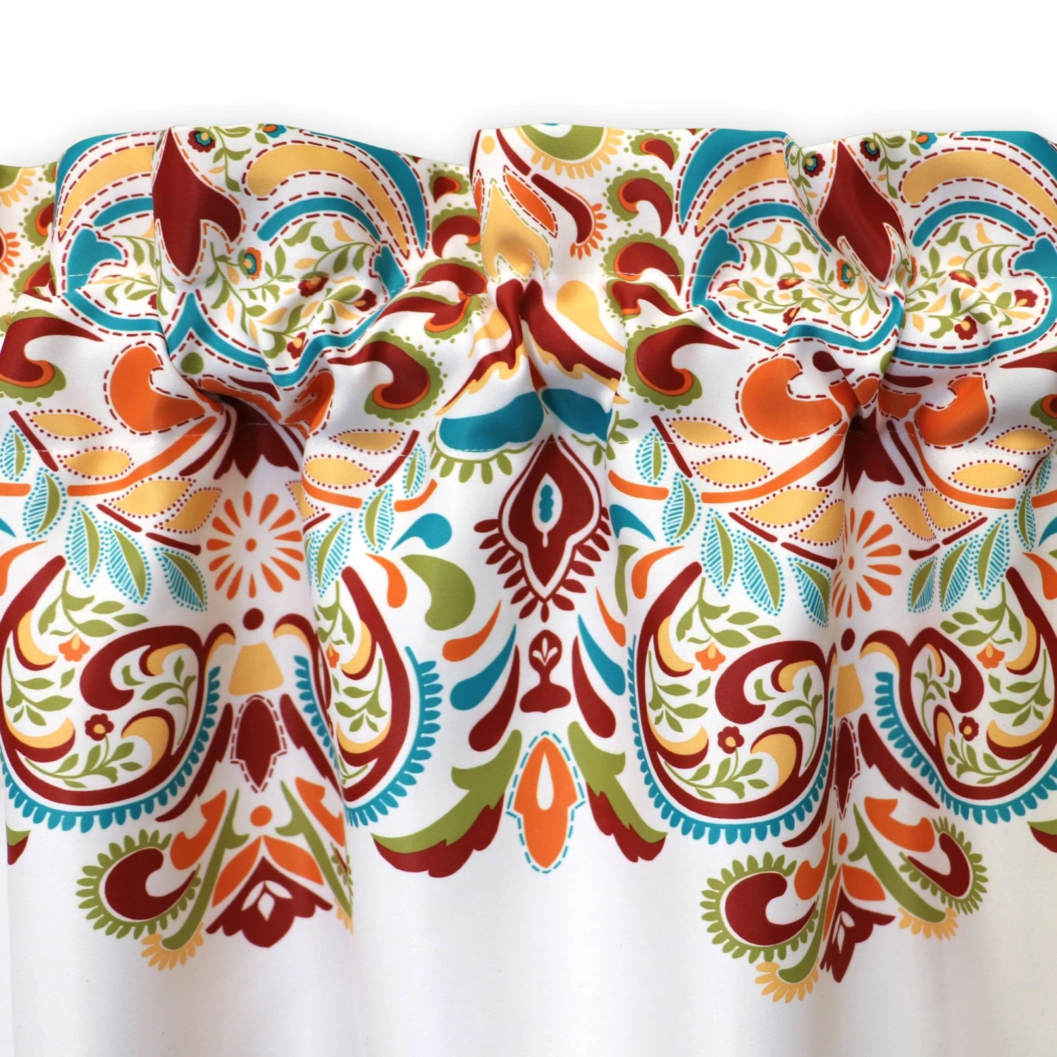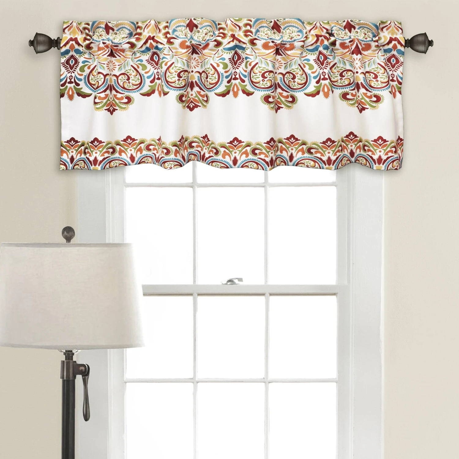 Our Clara Valance offers a combination of artistic flavor and serenity in this stunning bohemian style print. It features bold colors and a unique paisley damask pattern that add a gorgeous pop to your space. It makes the perfect centerpiece for your living area.