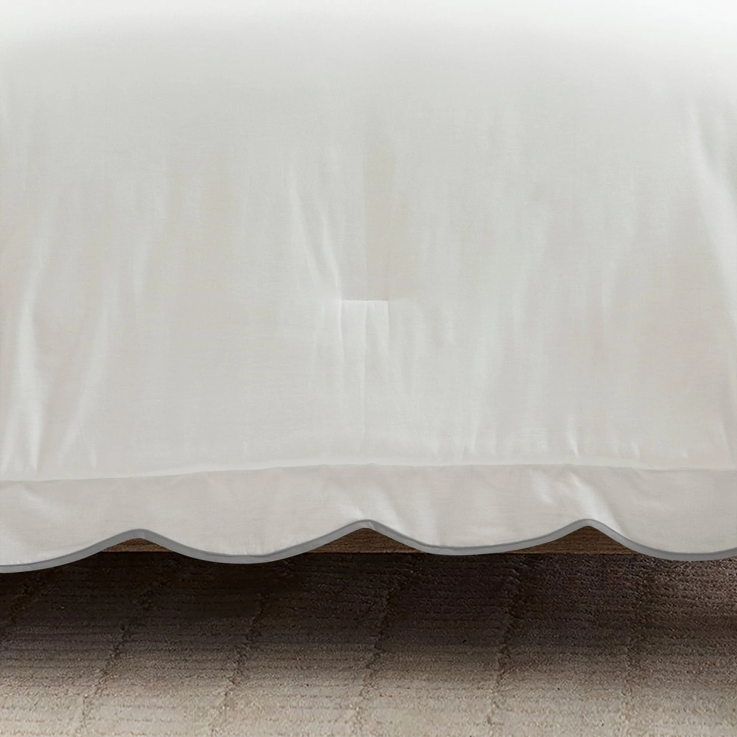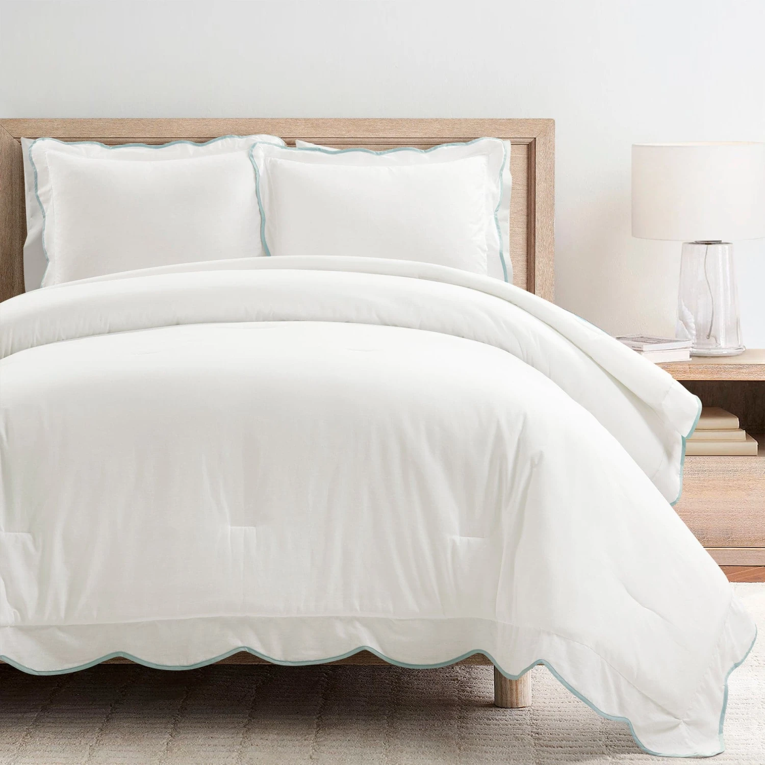 Crafted with meticulous attention to detail and high-quality materials, this Coastal Chic Scallop Edge 3 Piece Comforter Set offers both style and comfort. The generously filled comforter ensures warmth and coziness year-round, while the included shams complete the polished look. With a selection of soothing coastal colors, you can customize your primary or guest bedroom decor effortlessly.