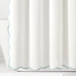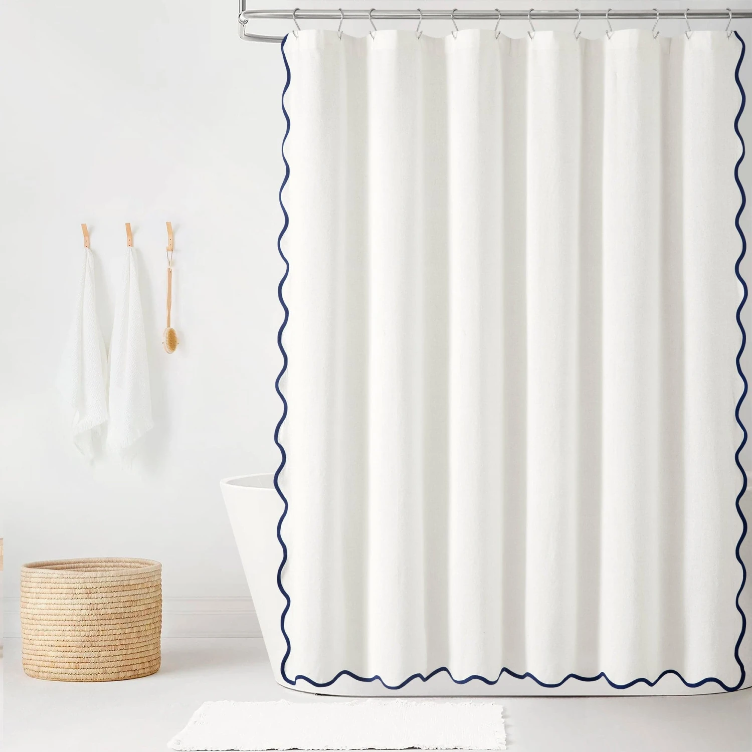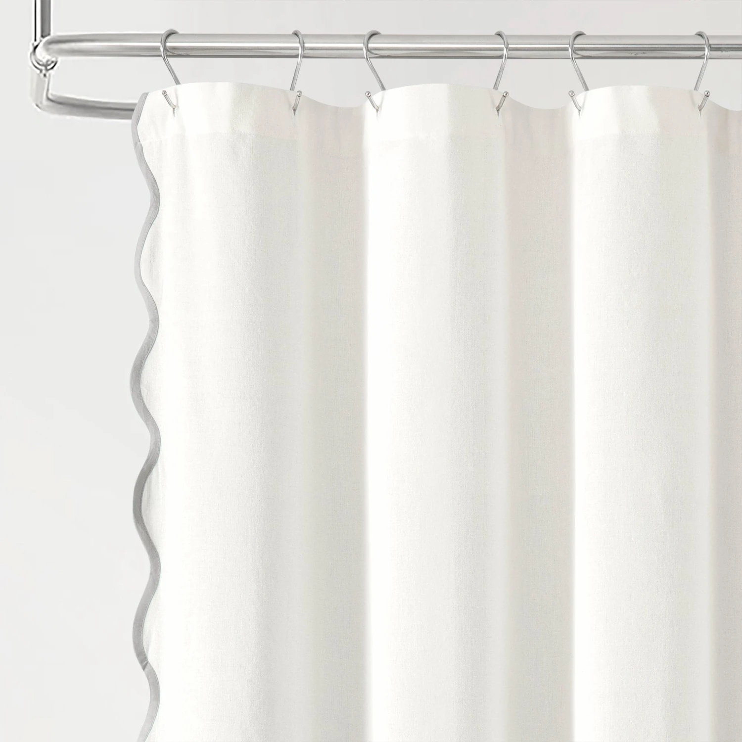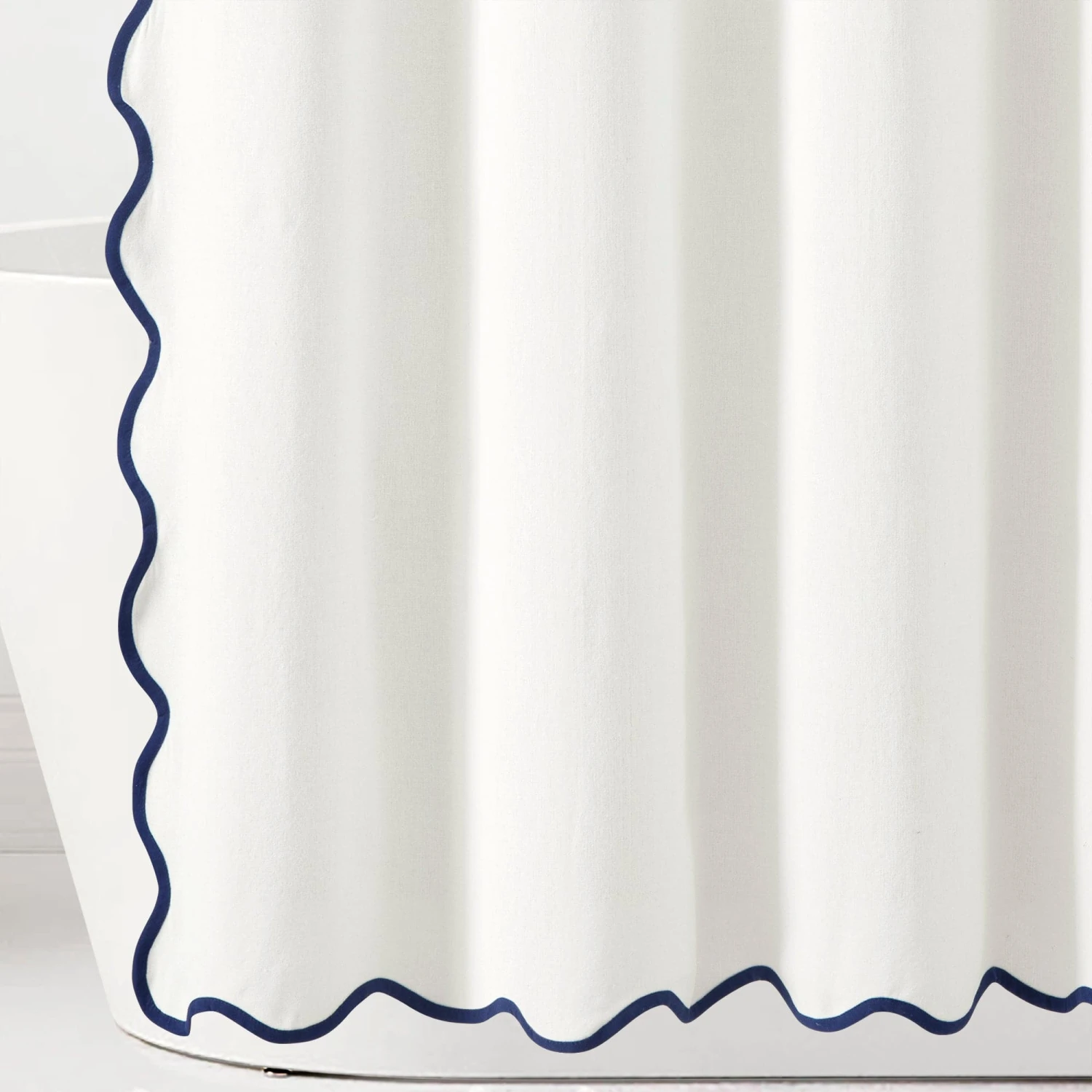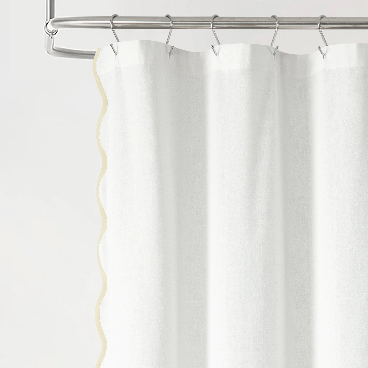 Bring a perfect blend of breezy seaside charm and practical elegance for your bathroom with this Coastal Chic Scallop Edge Shower Curtain. The scalloped edge design, reminiscent of the rolling waves along the shoreline, infuses your bathroom with a tranquil coastal ambiance.