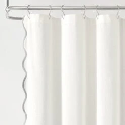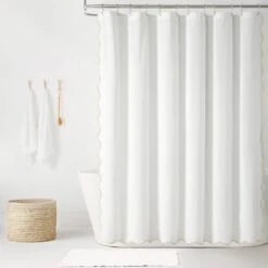 Create a serene, resort-like feel in your primary or guest bathroom with this Coastal Chic Scallop Edge Shower Curtain. Measuring 72 inches along each side, this shower curtain should fit most standard bathtubs. It installs easily with standard shower curtain rings or hooks (not included). Its opacity adds full privacy to the person taking a bath or shower.