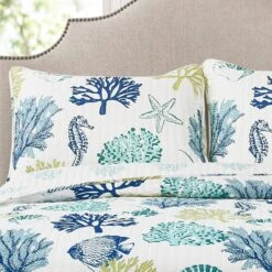 Any beach lover would love this Coastal Reef Quilt 3 Piece Set for his or her bedroom. This also makes a great option for a guest bedroom or any room in an actual beach home.