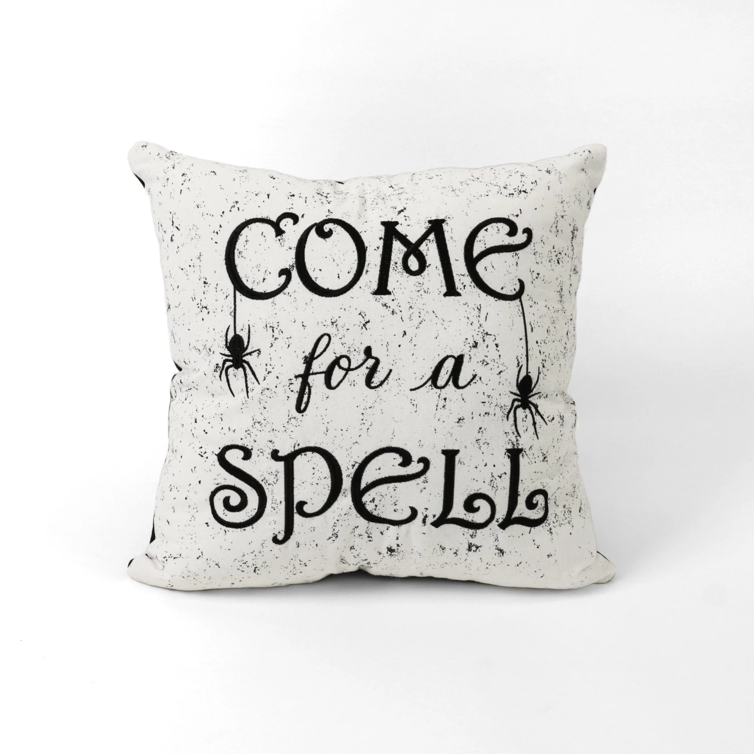 This pillow is perfect for brewing a bit of charm into your Halloween decor. The fun double entendre is decorated with spooky spider graphics to add to the theme. Decorate your sofa or arm chairs with this seasonal Come For A Spell Decorative Pillow.