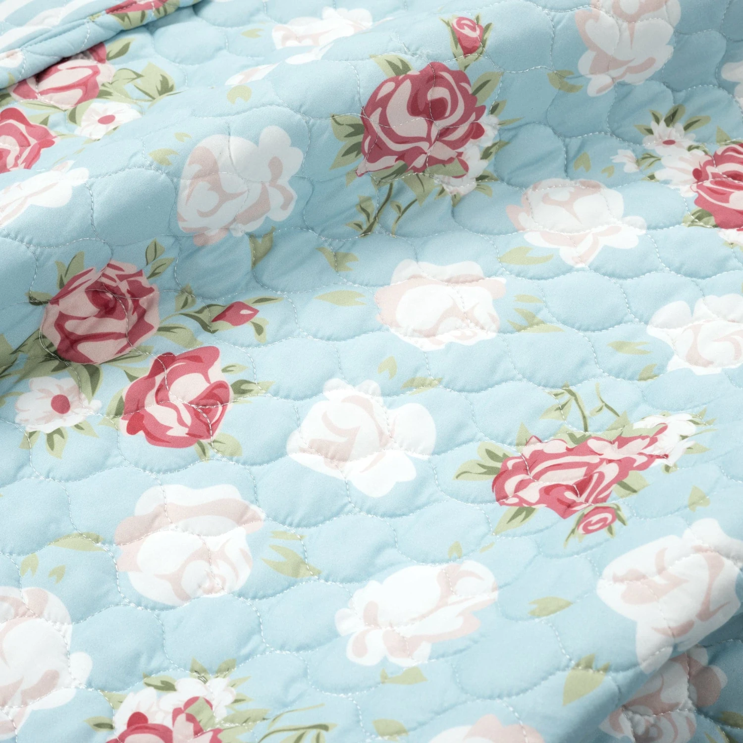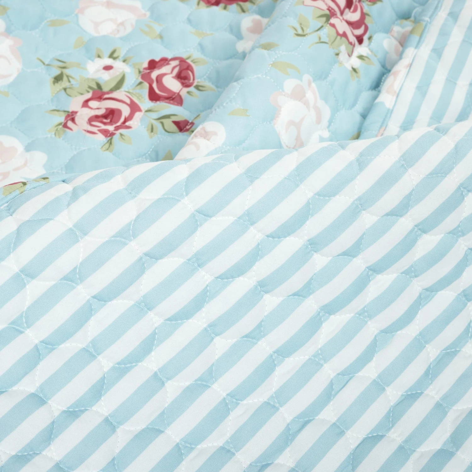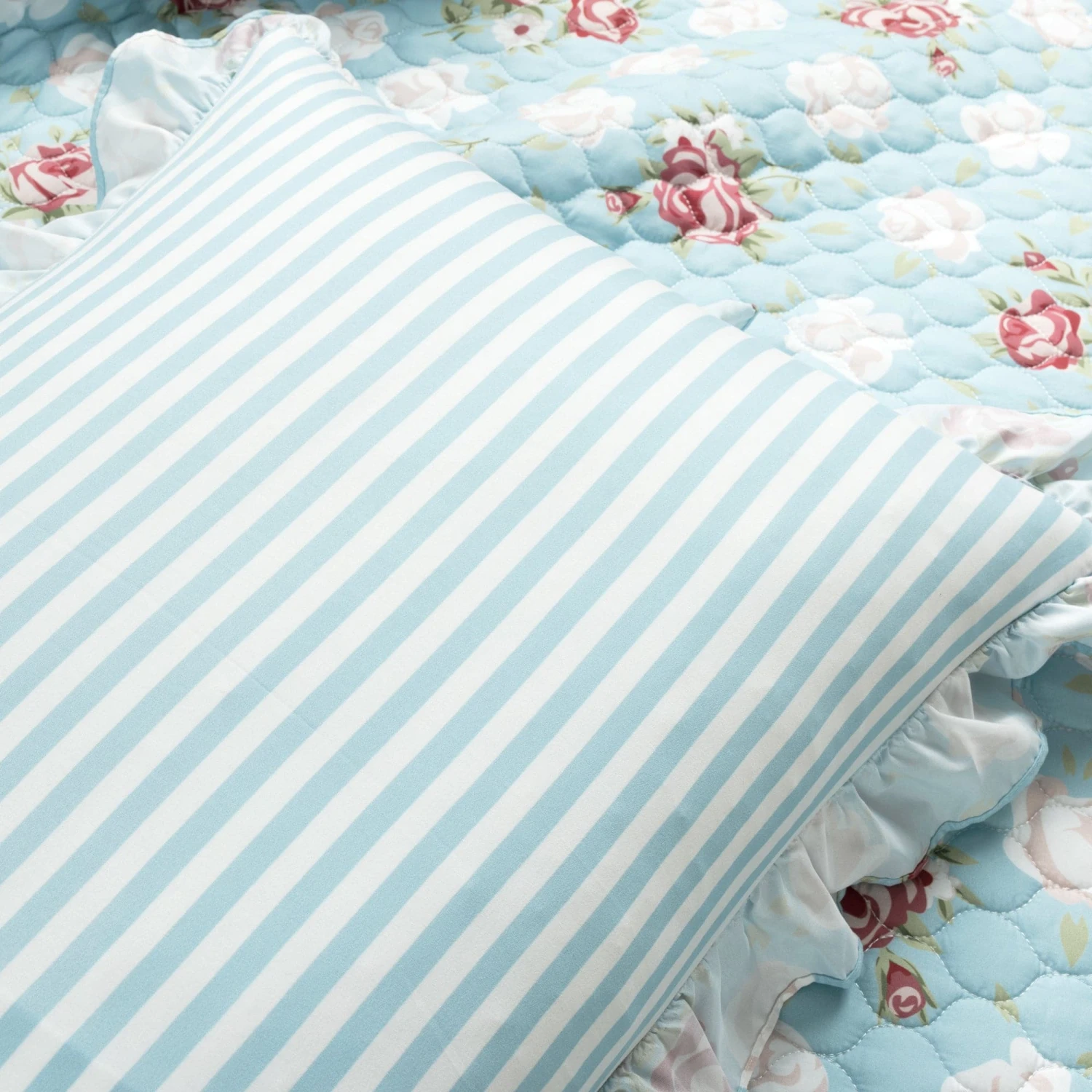 The reverse side of this Cottagecore Floral Ruffle Quilt 3 Piece Set features a simple stripe design. This gives you the option of switching up your bedroom’s look simply by flipping the quilt and shams over to the other side.