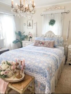 This lovely Cottagecore Flower Stripe Cotton Quilt 3 Piece Set introduces calming colors and opens the room for more vintage-inspired accessories. It would make a lovely addition to a primary bedroom or guest bedroom.