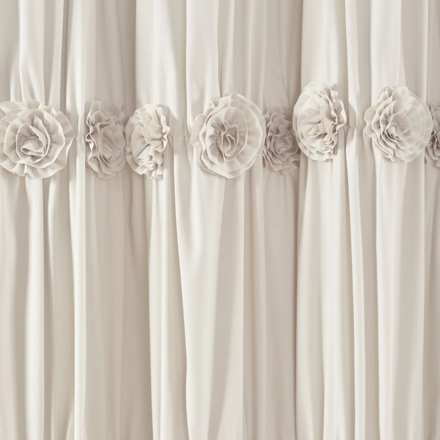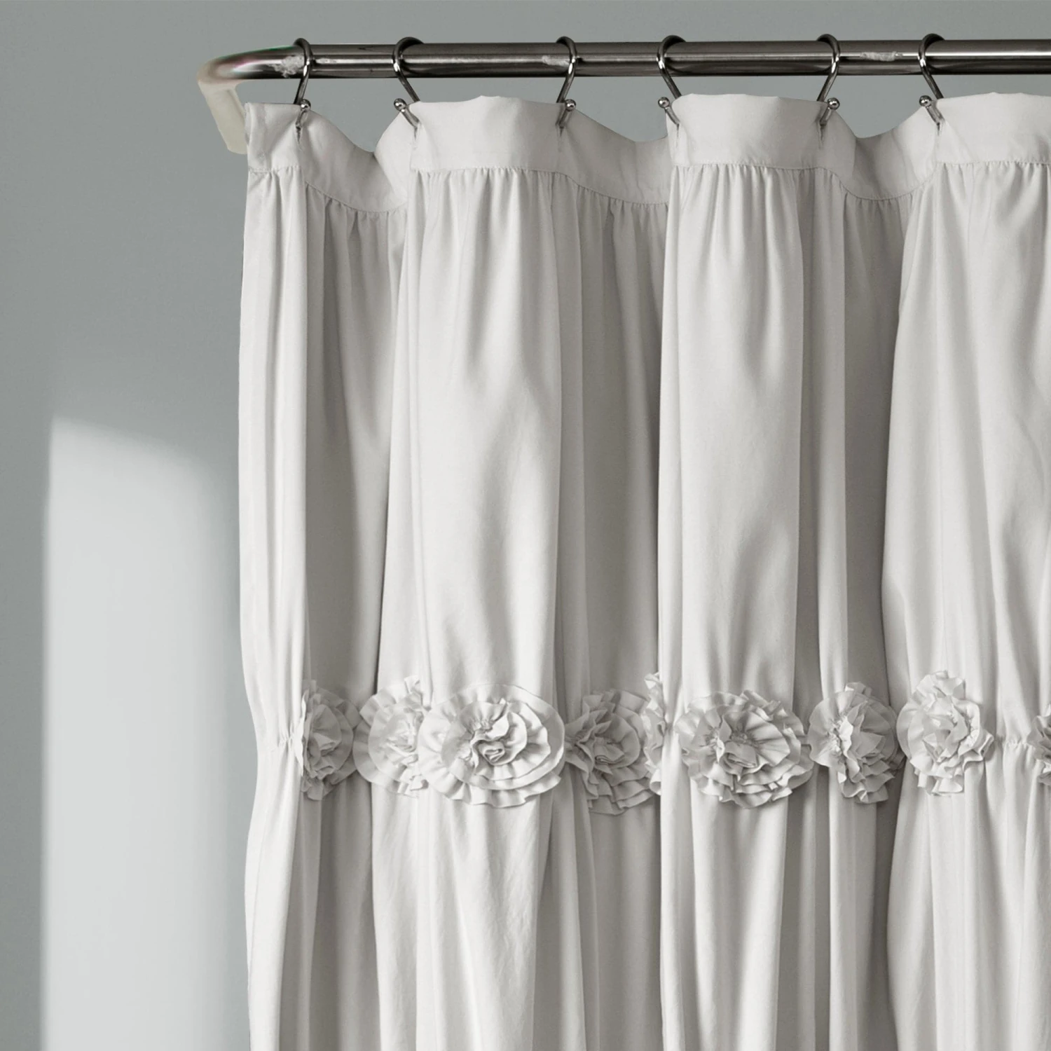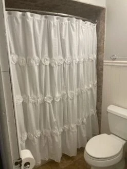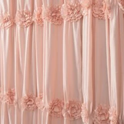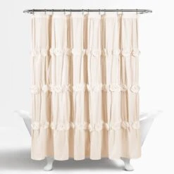 With details such as ruching and hand-crafted flowers, the Darla Shower Curtain can change the whole look of your bathroom without overwhelming it. The solid color design makes it easy to match the rest of your bathroom decor.