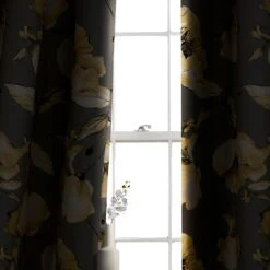 This Delsey Floral Absolute Blackout Window Curtain Set is lightweight and blocks 100% of the light! The triple fused technology helps reduce noise and energy usage. Best of all, form and function meet fashion with these panels which feature a beautiful floral pattern and nice hand feel.