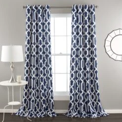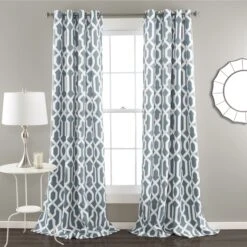 Our Edward Trellis Light Filtering Window Curtain Panel Set is available in five color options, including blue, navy, black, gray, white and taupe.