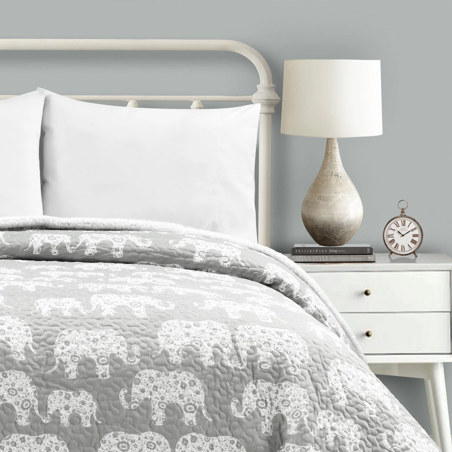 The elephant pattern on this Elephant Parade Sherpa Blanket/Coverlet creates a peaceful atmosphere for promoting a better night’s rest.
