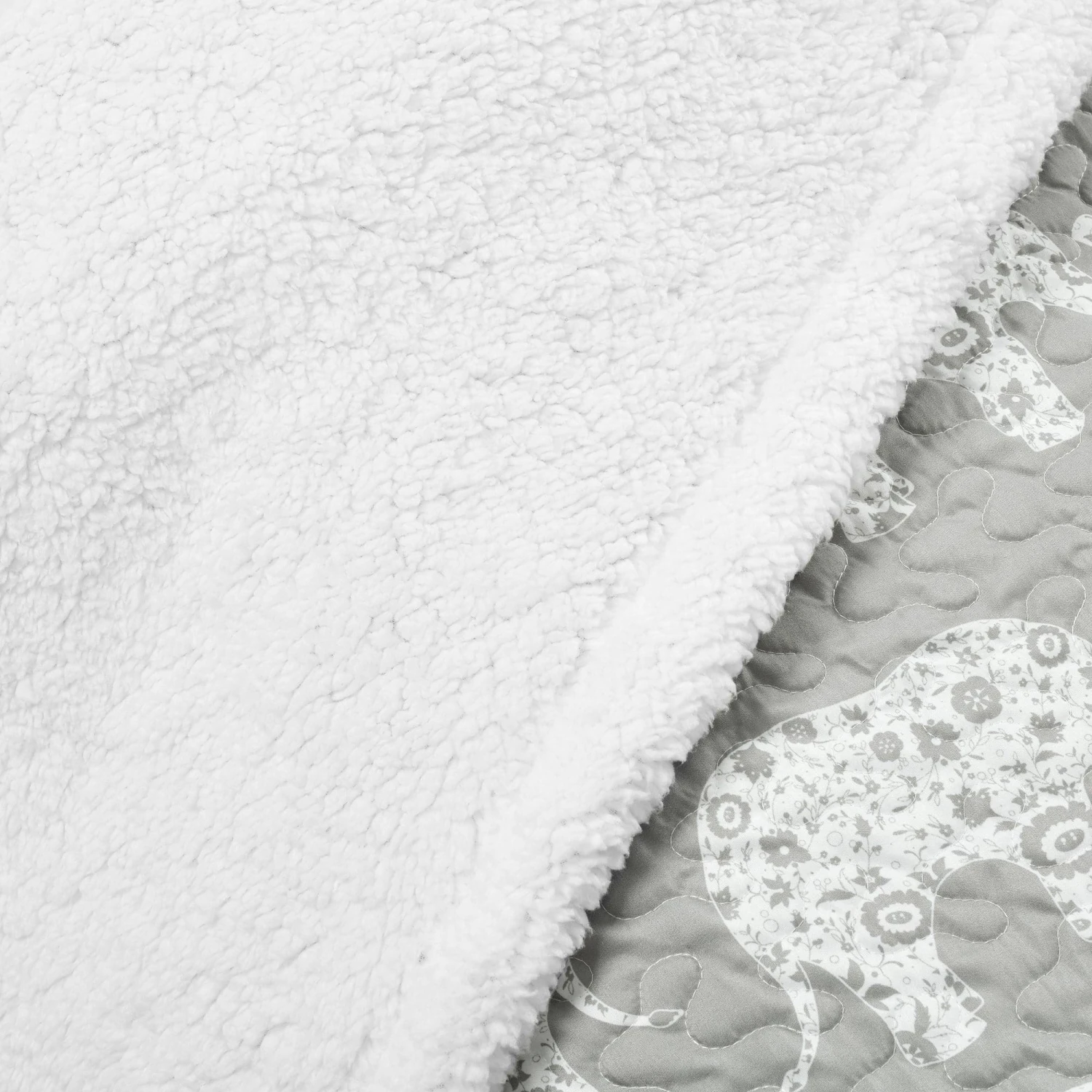 This warm and cozy sherpa-lined Elephant Parade Sherpa Blanket/Coverlet can be used as the sole blanket on the bed, or as an oversized throw, in either a bedroom or living room.