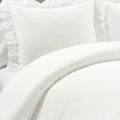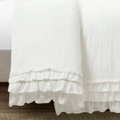 With this delicately trimmed Ella Ruffle Lace 100% Cotton Duvet Cover 3 Piece Set, you can create a lovely and stylish oasis in your primary or guest bedroom. Made with 100% cotton, layers of airy ruffles and lace trace the edge of the duvet cover and two matching shams. Use this in a cottagecore, traditional, French Country or farmhouse style bedroom.