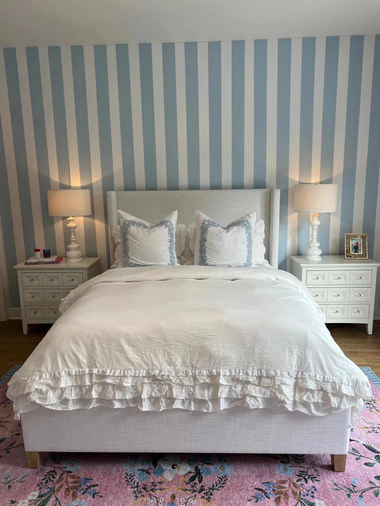 - King: 92″H x 104″W + 3″ Ruffle, Shams: 20″H x 36″W + 3″ Ruffle