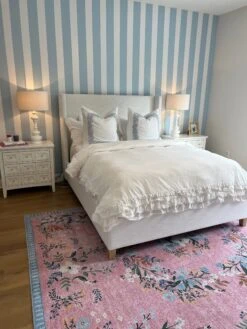 This set is safe to machine wash and tumble dry. Dry cleaning is highly recommended to protect the delicate ruffles and lace trim. Follow all care instructions on the label to maintain the integrity of the duvet cover set.