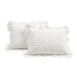 The ruffles on the quilt and the pillow shams create a whole new dimension to the bedroom. The Ella Ruffle Lace 3 Piece Quilt Set has a calming effect, adding a touch of elegance and loads of style with its frilly look on solid color. Fans of cottagecore, farmhouse and French country decor will adore this quilt set.