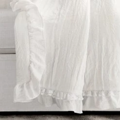 The Ella Ruffle Lace Throw has a calming effect, adding style and elegance to your bedroom or living room with its intricate and complimentary ruffled edges with lace trim. Every farmhouse, cottage or shabby-chic style home can welcome this throw easily into their home decor.