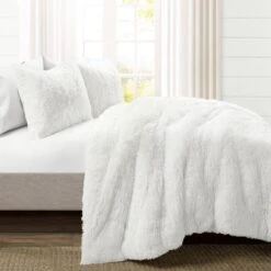 This stunning bedding set is truly luxurious. The faux fur on the front of this duvet cover set adds lovely texture to any space. Use the Emma Faux Fur Duvet Cover 3 Piece Set on its own or as a layering piece with another comforter, throw blanket, or quilt and all the decorative pillows you desire. You can’t go wrong with this bedding in a primary or guest bedroom, a teenager’s room, a big kid bedroom, or a dorm room.