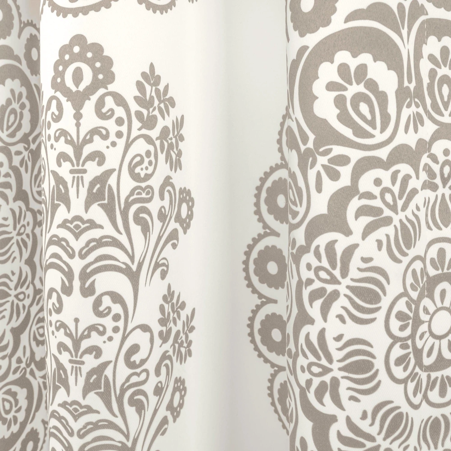 This Evelyn Medallion Light Filtering Window Curtain Set serves two functions as it enhances the mood in any room with its soft tone colors and beautiful array of medallions. In addition to its graceful and chic appearance, it also offers room darkening capabilities, which combine beauty and convenience in one product.