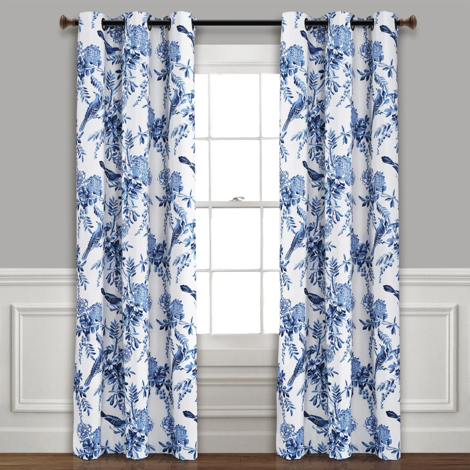 The Farmhouse Bird And Flower Insulated Grommet Blackout Window Curtain Panel Set is sold by the pair. Each panel measures 38 inches wide and is available in your choice of 84-inch or 95-inch lengths. With multiple colors to choose from, you are sure to find the perfect match for your space.